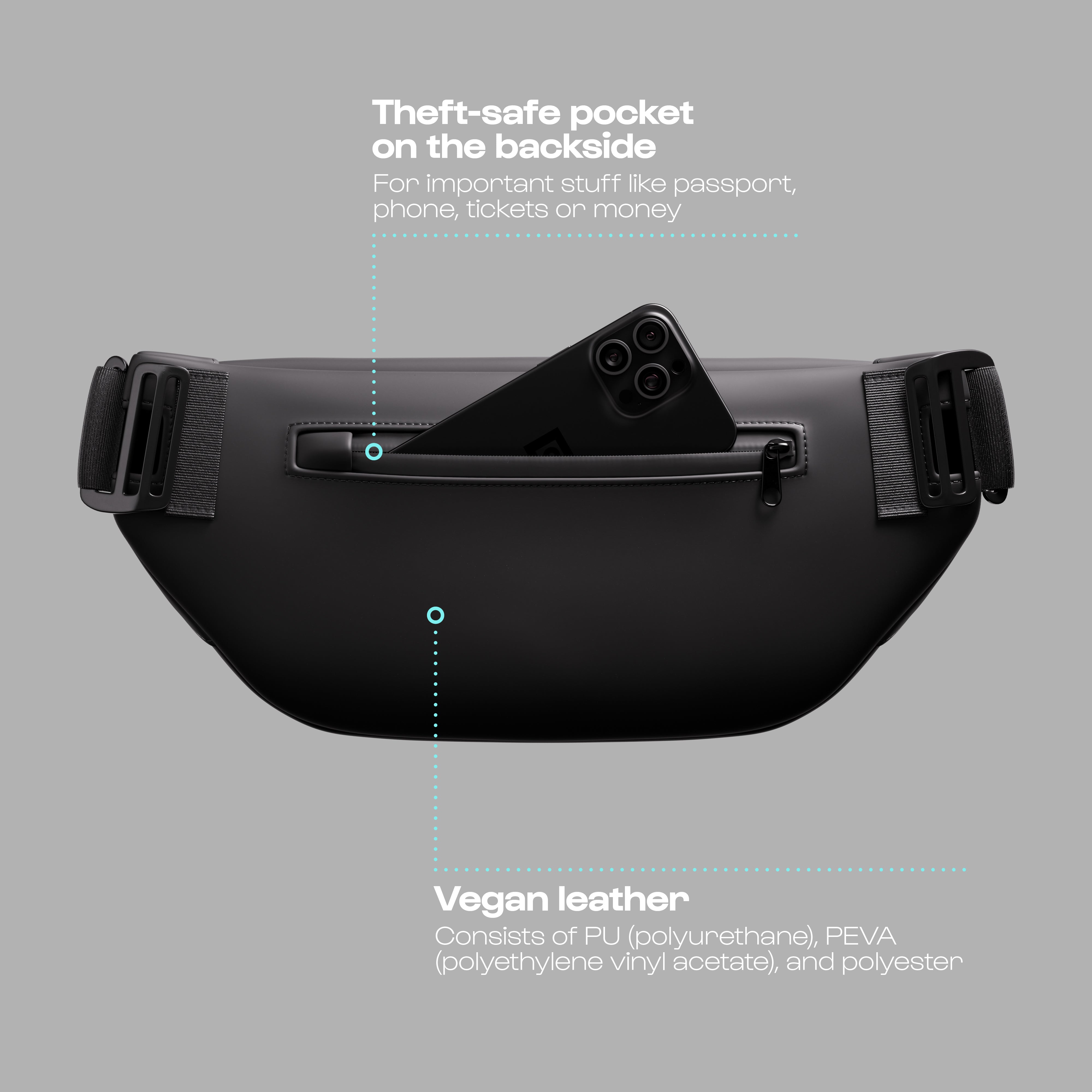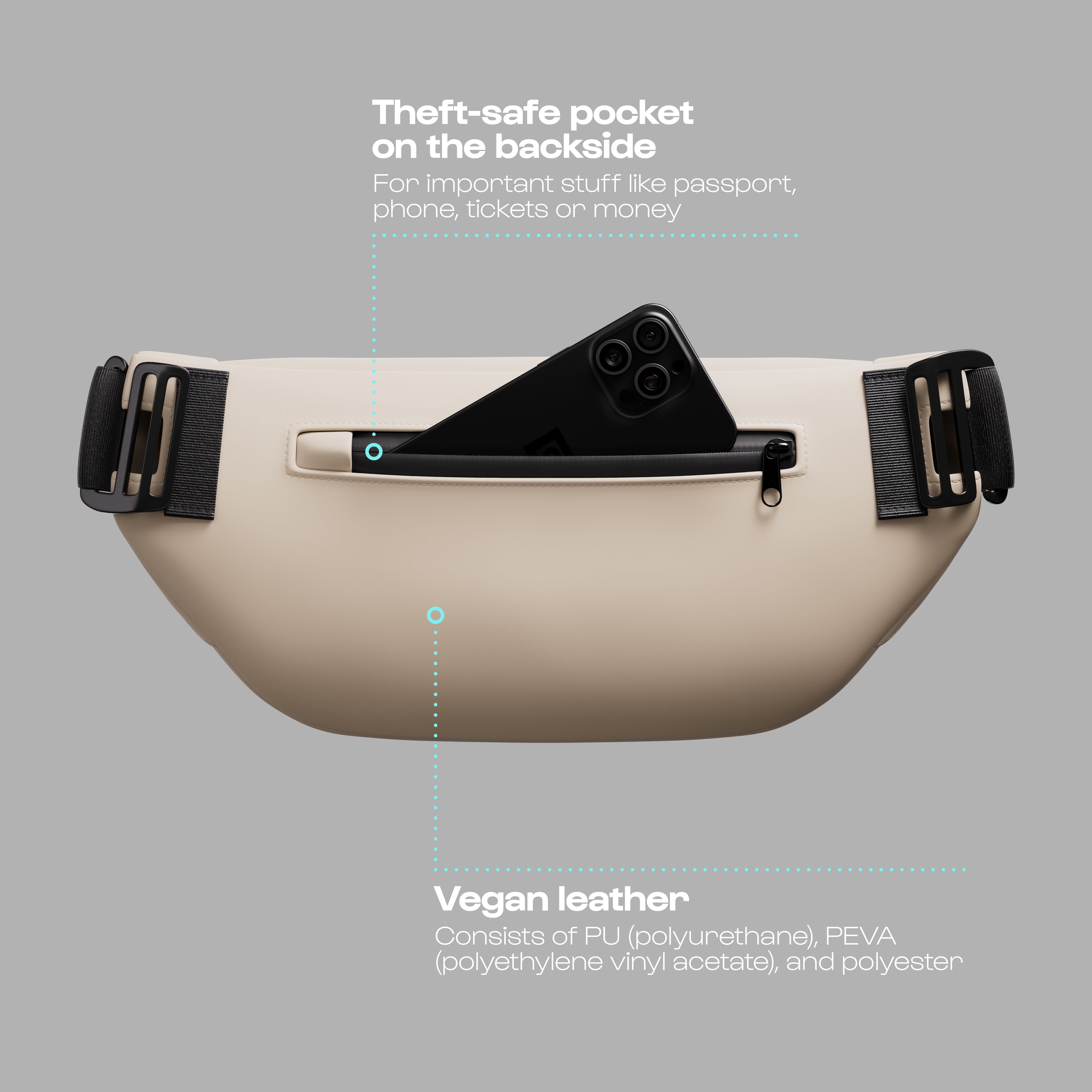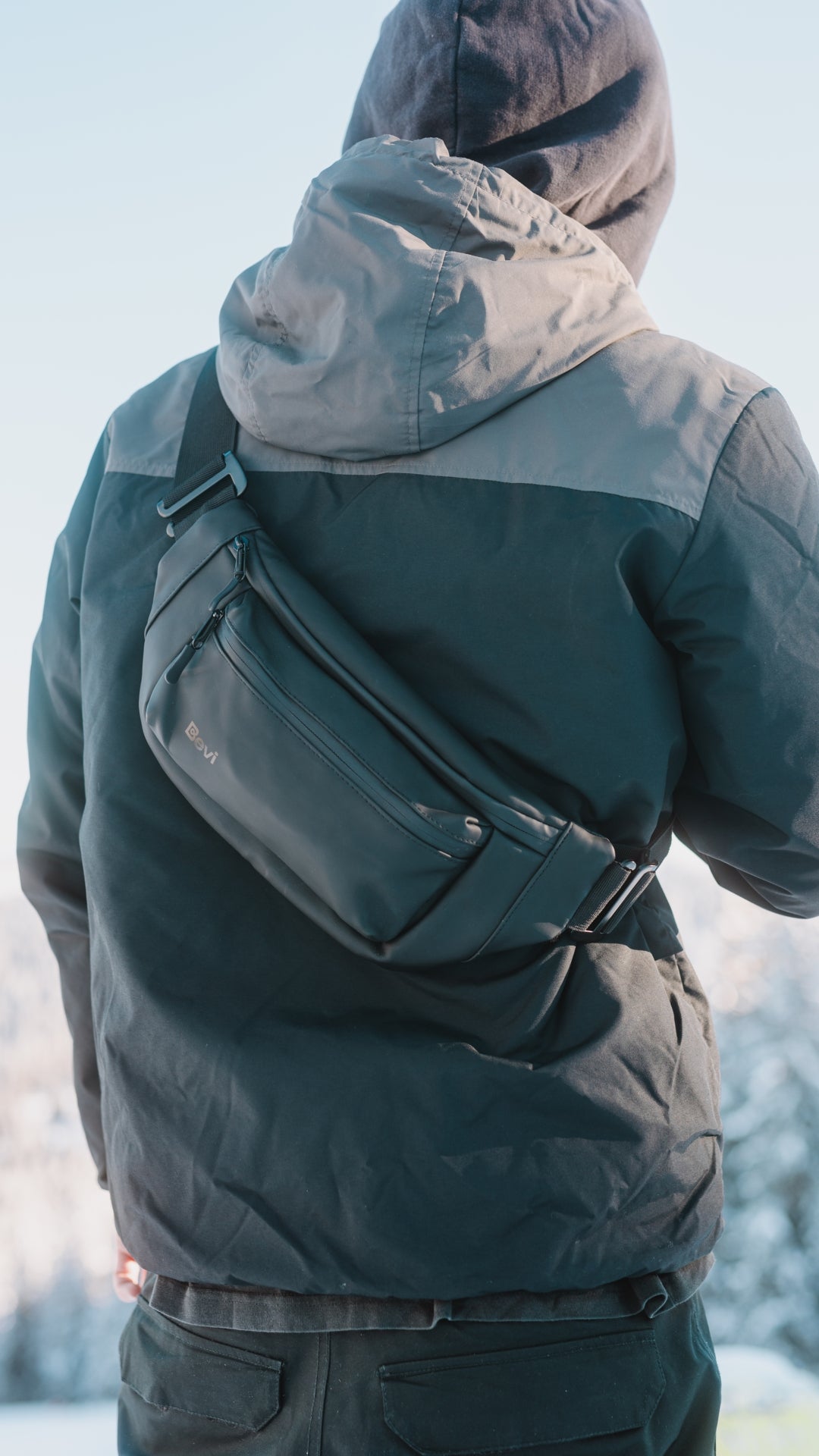 Easily adjust the Bevi Bag to your personal preferences, whether you choose to carry it on your chest, your back, or over your left or right shoulder.